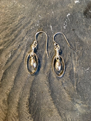 Silver ovals with silver bead earrings