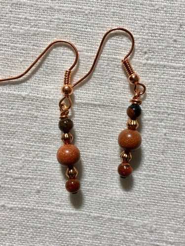 Goldstone and copper earrings